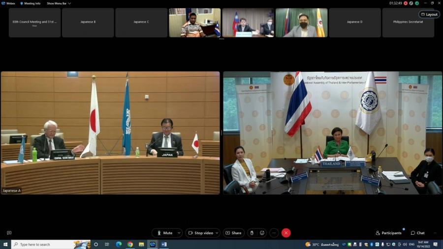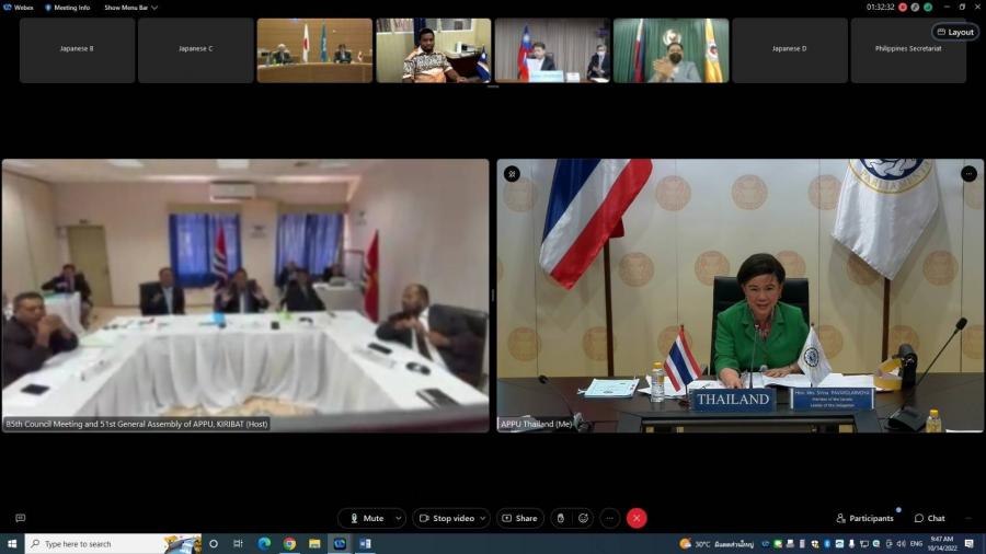 วันศุกร์ที่ 14 ตุลาคม 2565 เวลา 09.00 นาฬิกา ซึ่งเป็นการประชุมวันที่สองของการประชุมคณะมนตรีสหภาพสมาชิกรัฐสภาเอเชียและแปซิฟิก ครั้งที่ 85 และการประชุมสมัชชาใหญ่ฯ ครั้งที่ 51 (The 85th Council Meeting and the 51st General Assembly of APPU) ในรูปแบบการประชุมผ่านสื่ออิเล็กทรอนิกส์ จากกรุงตาราวา สาธารณรัฐคิริบาส นางศิรินา ปวโรฬารวิทยา สมาชิกวุฒิสภาและเลขาธิการหน่วยประจำชาติไทยใน APPU ในฐานะหัวหน้าคณะผู้แทนรัฐสภาไทย พร้อมด้วยนางพิชชารัตน์ เลาหพงศ์ชนะ และน.ส.จิราพร สินธุไพร สมาชิกสภาผู้แทนราษฎร คณะผู้แทนรัฐสภาไทย ได้เข้าร่วมพิธีปิดการประชุมและการรับรองแถลงการณ์ร่วม (Joint Communiqué) โดยที่ประชุมประกอบด้วยผู้แทนประเทศสมาชิก APPU จำนวน 6 ประเทศ ได้แก่ ไต้หวัน ญี่ปุ่น หมู่เกาะมาร์แชลล์ ฟิลิปปินส์ ไทย และคิริบาส (ประเทศเจ้าภาพ) ได้รับรองแถลงการณ์ร่วม ซึ่งเน้นย้ำความร่วมมือภายใต้หัวข้อหลักของการประชุมฯ การสร้างสังคมที่มีความสามารถในการฟื้นตัวและยั่งยืน ผ่านความมั่นคง สันติภาพ และความเจริญรุ่งเรือง เพื่อเน้นย้ำรากฐานที่สำคัญของ APPU ในการรักษาสันติภาพและความเจริญรุ่งเรืองในภูมิภาค โดยร่างแถลงการณ์ร่วมได้กล่าวถึงรายงานสถานการณ์ประเทศที่เน้นย้ำถึงความท้าทายในด้านต่าง ๆ ของประเทศสมาชิก APPU เช่น ความมั่นคงทางการเมือง ปัญหาความขัดแย้ง การปฏิบัติการที่ส่งผลกระทบต่ออธิปไตย ดินแดนและมหาสมุทร ความเสมอภาคและสิทธิ ผลกระทบจากโรคโควิด 19 ปัญหาสุขภาพ เศรษฐกิจ สิ่งแวดล้อม ระดับน้ำทะเลที่สูงขึ้น และความปลอดภัยในโลกไซเบอร์ เป็นต้น ทั้งนี้ ประเทศสมาชิก APPU ได้มีฉันทามติที่จะร่วมมือกันอย่างแข็งขันในการจัดการกับความท้าทายต่าง ๆ โดยอาศัยความร่วมมือทั้งในระดับภูมิภาคและระดับนานาชาติอย่างแท้จริง การทูตที่มีประสิทธิภาพ ควบคู่ไปกับความก้าวหน้าทางเทคโนโลยี