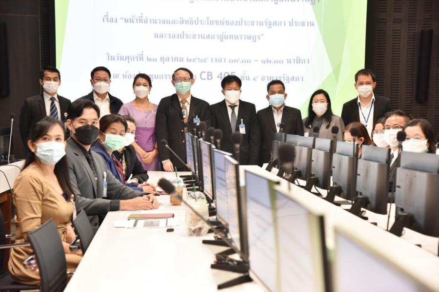 วันศุกร์ที่ 21 ตุลาคม 2565 เวลา 09.00 นาฬิกา ณ ห้องประชุม CB 405 ชั้น 4 อาคารรัฐสภา ว่าที่ ร.ต.ต.อาพัทธ์  สุขะนันท์ รองเลขาธิการสภาผู้แทนราษฎร เป็นประธานในพิธีเปิดกิจกรรมแลกเปลี่ยนเรียนรู้สำนักงานประธานสภาผู้แทนราษฎร เรื่อง "หน้าที่อำนาจและสิทธิประโยชน์ของประธานรัฐสภา ประธานและรองประธานสภาผู้แทนราษฎร" โดยมี นายนาถะ ดวงวิชัย  ผู้อำนวยการสำนักงานประธานสภาผู้แทนราษฎร กล่าวรายงาน