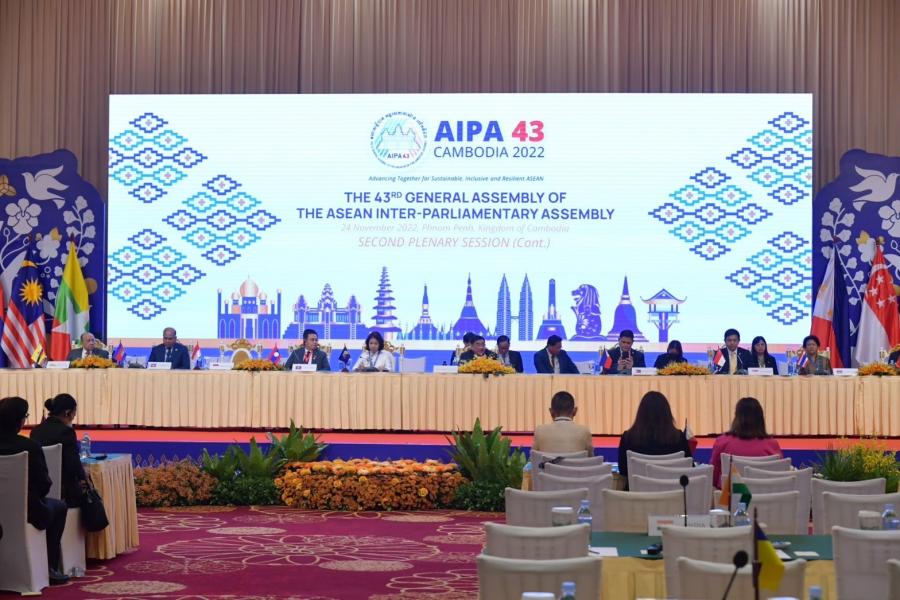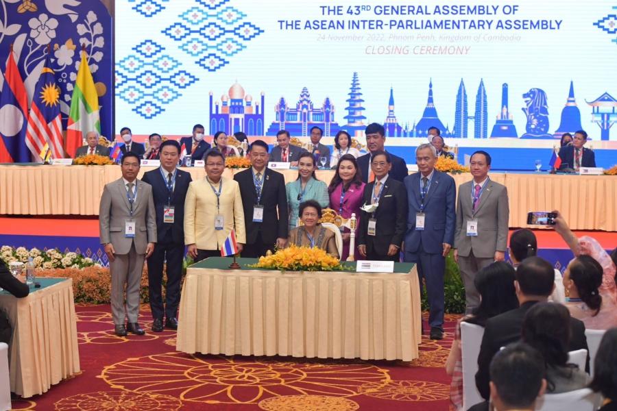 เมื่อวันพฤหัสบดีที่ 24 พ.ย.65 เวลา 08.30 - 11.45 น. ณ กรุงพนมเปญ ราชอาณาจักรกัมพูชา คณะผู้แทนรัฐสภาไทยนำโดย ศาสตราจารย์พิเศษกาญจนารัตน์  ลีวิโรจน์ สมาชิกวุฒิสภา ในฐานะหัวหน้าคณะผู้แทนรัฐสภาไทยฯ ได้เข้าร่วมการประชุมเต็มคณะ ช่วงที่ 2 และพิธีปิดการประชุมใหญ่สมัชชารัฐสภาอาเซียน ครั้งที่ 43 ในการประชุมเต็มคณะ ช่วงที่ 2 ที่ประชุมได้ให้การรับรองรายงานการประชุมด้านต่าง ๆ ดังนี้ 1) การหารือกับประเทศผู้สังเกตการณ์ 2) การหารือระหว่างคณะผู้แทนสมัชชารัฐสภาอาเซียนกับเลขาธิการอาเซียน และ 3) คณะกรรมาธิการด้านการยกร่างแถลงการณ์ร่วมต่อมาในช่วงพิธีปิดการประชุม ที่ประชุมได้รับทราบวาระที่สำคัญ ได้แก่ การประกาศวันและสถานที่จัดการประชุมใหญ่ AIPA ครั้งที่ 44 การส่งมอบตำแหน่งประธาน AIPA จากราชอาณาจักรกัมพูชา ไปยังสาธารณรัฐอินโดนีเซีย นอกจากนี้ หัวหน้าคณะผู้แทนของประเทศสมาชิก AIPA ยังได้ร่วมลงนามในแถลงการณ์ร่วมของการประชุม อีกด้วย
