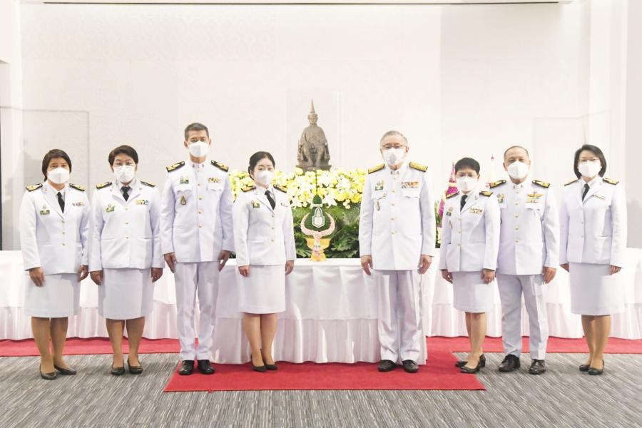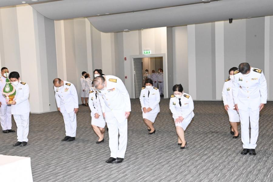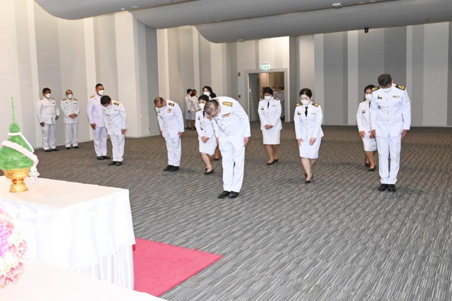 เลขาธิการสถาบันพระปกเกล้า วางพานประดับพุ่มดอกไม้ถวายบังคมพระรูปต้นแบบพระบาทสมเด็จพระปกเกล้าเจ้าอยู่หัว ในนาม “สถาบันพระปกเกล้า” เนื่องในพิธีฉลองวันพระราชทานรัฐธรรมนูญแห่งราชอาณาจักรไทย