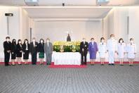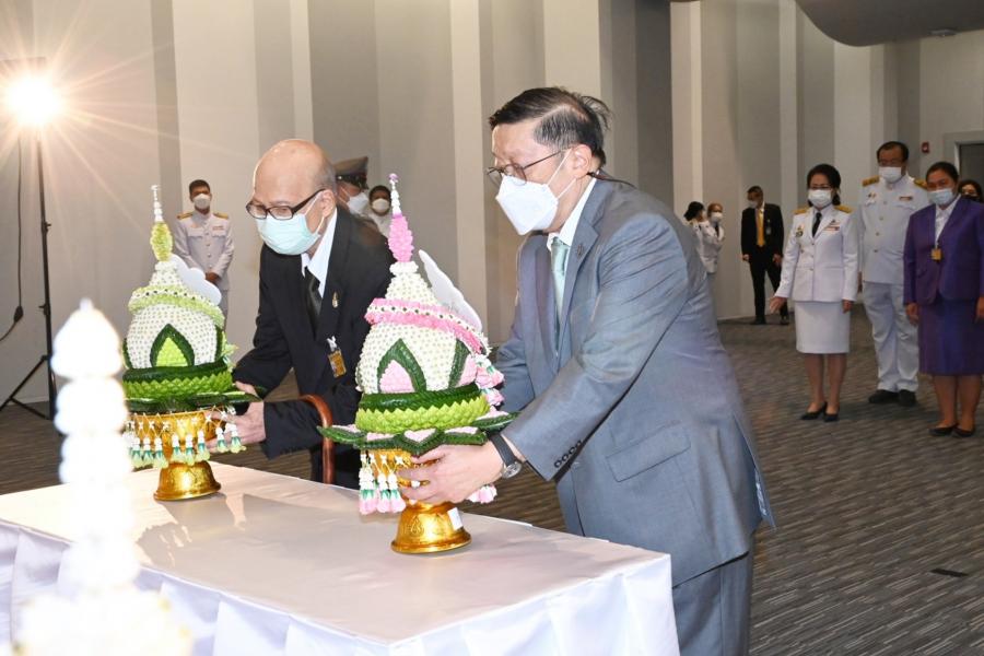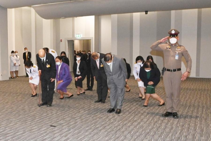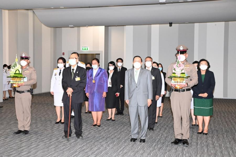 ประธานมูลนิธิประชาธิปก-รำไพพรรณี วางพานประดับพุ่มดอกไม้ถวายบังคมพระรูปต้นแบบพระบาทสมเด็จพระปกเกล้าเจ้าอยู่หัว ในนาม มูลนิธิประชาธิปก-รำไพพรรณี และ รองประธานกรรมการมูลนิธิพระบรมราชานุสรณ์พระบาทสมเด็จพระปกเกล้าเจ้าอยู่หัวและสมเด็จพระนางเจ้ารำไพพรรณี คนที่สอง วางพานประดับพุ่มดอกไม้ถวายบังคมฯ ในนาม มูลนิธิพระบรมราชานุสรณ์พระบาทสมเด็จพระปกเกล้าเจ้าอยู่หัวและสมเด็จพระนางเจ้ารำไพพรรณี