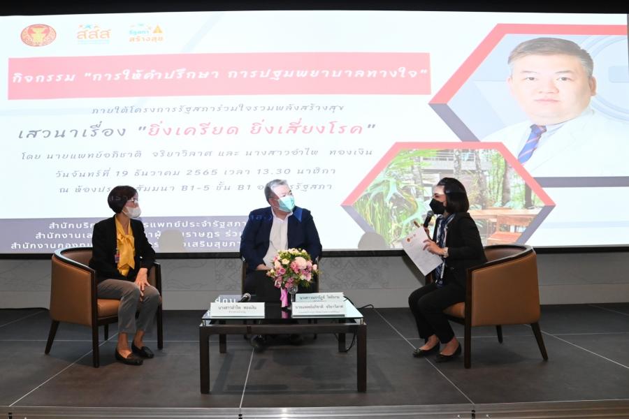 เลขาธิการสภาผู้แทนราษฎร เป็นประธานเปิดกิจกรรม การให้คำปรึกษา การปฐมพยาบาลทางใจ การเสวนาให้ความรู้เรื่อง ยิ่งเครียด ยิ่งเสี่ยงโรค