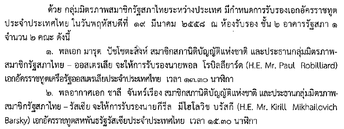 การให้การรับรองเอกอัครราชทูตเครือรัฐออสเตรเลีย และเอกอัครราชทูตสหพันธรัฐรัสเซียระจำประเทศไทย