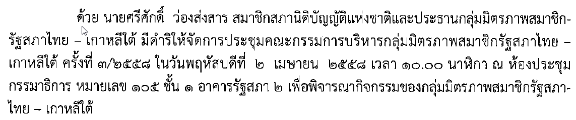 การประชุมคณะกรรมการบริหารกลุ่มมิตรภาพสมาชิกรัฐสภาไทย-เกาหลีใต้ ครั้งที่ ๓/๒๕๕๘