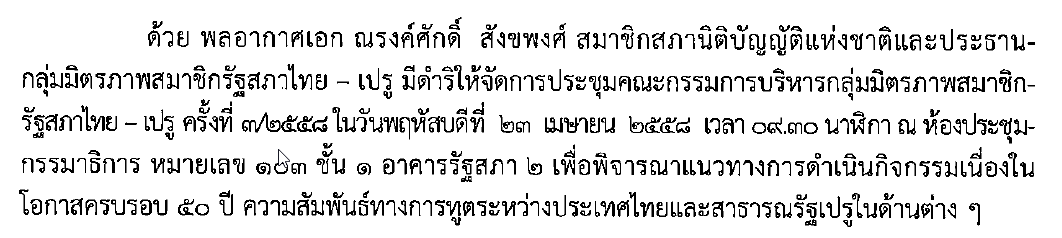 การประชุมคณะกรรมการบริหารกลุ่มมิตรภาพสมาชิกรัฐสภาไทย-เปรู ครั้งที่ ๓/๒๕๕๘