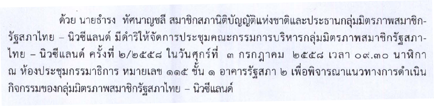 การประชุมคณะกรรมการบริหารกลุ่มมิตรภาพสมาชิกรัฐสภาไทย-นิวซีแลนด์ ครั้งที่ ๒/๒๕๕๘