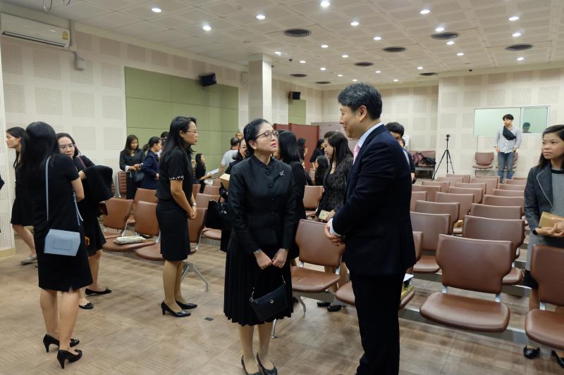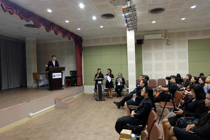 นางชลลดา  กันคล้อย ที่ปรึกษาด้านระบบงานนิติบัญญัติ พร้อมคณะข้าราชการสำนักงานเลขาธิการสภาผู้แทนราษฎร เข้าศึกษาดูงานในกิจกรรม “สำนักภาษาต่างประเทศสัญจรเพื่อแลกเปลี่ยนประสบการณ์และความรู้กับหน่วยงานภายในประเทศ” ภายใต้โครงการเสริมสร้างศักยภาพและวิสัยทัศน์ของนักวิเทศสัมพันธ์ เพื่อแลกเปลี่ยนความรู้และพัฒนาทักษะด้านต่างประเทศ เมื่อวันพฤหัสบดีที่ ๒๗ เมษายน ๒๕๖๐ เวลา ๐๘.๓๐–๑๖.๓๐ นาฬิกา ณ ศูนย์วัฒนธรรมเกาหลีประจำประเทศไทย ถนนสุขุมวิท แขวงคลองเตยเหนือ เขตวัฒนา กรุงเทพฯ โดยมี นายอิม มันกยู กงสุลใหญ่สถานเอกอัครราชทูตสาธารณรัฐเกาหลีประจำประเทศไทย ให้การต้อนรับ และรับฟังการบรรยายในหัวข้อเรื่อง “การขนส่งระบบรางของเกาหลีใต้” โดย นายคิม  โดวอน ผู้อำนวยการสำนักโครงการระหว่างประเทศ การรถไฟแห่งสาธารณรัฐเกาหลี