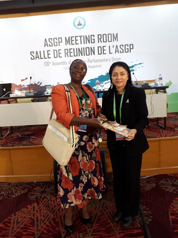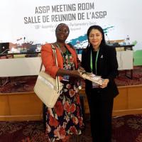 นางชลลดา กันคล้อย ที่ปรึกษาด้านระบบงานนิติบัญญัติ พบปะสนทนาและมอบของที่ระลึกแก่นาง Doris Katai Katebe MWINGA เลขาธิการรัฐสภาแซมเบียและประธานสมาคมเลขาธิการรัฐสภา |