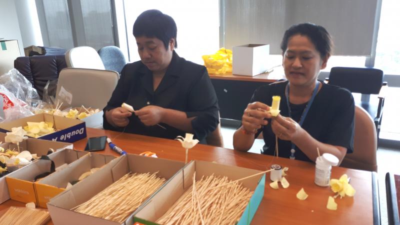 คณะทำงานการส่งเสริม สนับสนุน การสร้างเสริมจริยธรรมในองค์กร และการดำเนินงานด้านคุณธรรมและความโปร่งใสของส่วนราชการสังกัดรัฐสภาของทั้งสามสำนักด้านต่างประเทศและข้าราชการฯ ร่วมเป็นจิตอาสาจัดทำดอกไม้จันทน์สำหรับพระราชพิธีถวายพระเพลิงพระบรมศพพระบาทสมเด็จพระปรมินทรมหาภูมิพลอดุลยเดช "ดอกไม้จันทน์จากความภักดี ถวายภูมี ภูมิพล" ระหว่างวันที่ ๑๕ มิถุนายน–๑๕ กรกฎาคม ๒๕๖๐ ช่วงพักเที่ยง ณ ห้องประชุมด้านต่างประเทศ ชั้น ๑๗ อาคารทิปโก้ พระราม ๖ โดยจะรวบรวมนำส่งสำนักบริการทางการแพทย์ สำนักงานเลขาธิการสภาผู้แทนราษฎร เพื่อส่งมอบต่อไปยังส่วนราชการที่รับผิดชอบต่อไป