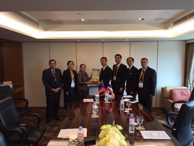ขณะมอบของที่ระลึกแก่นางสีใส ลือเดดมูนสอน