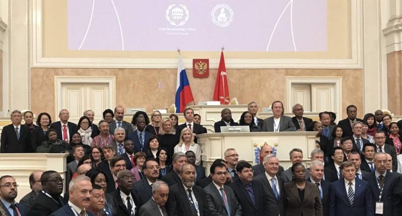 คณะผู้แทนไทยถ่ายภาพร่วมกับสมาชิกสมาคมเลขาธิการรัฐสภา ณ สภานครเซนต์ปีเตอร์สเบิร์ก |