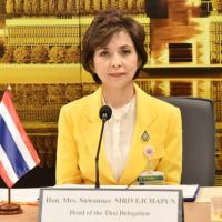 ในระหว่างการประชุมช่วง Leaders Talks ในหัวข้อ Promoting sustainable blue economy with a gender lens in Asia นางสุวรรณี  สิริเวชชะพันธ์ ได้ร่วมอภิปรายโดยมีเนื้อหาเกี่ยวกับบทบาทของไทยในแนวทางเศรษฐกิจสีน้ำเงิน (Blue Economy) ซึ่งเป็นวาระสำคัญเกี่ยวกับแนวทางพัฒนาเศรษฐกิจบนฐานทรัพยากรทางทะแลอย่างยั่งยืน และขับเคลื่อนให้เศรษฐกิจเติบโตควบคู่ไปกับการดูแลรักษาระบบนิเวศอย่างยั่งยืน พร้อมกล่าวถึงแนวทางระบบการจัดการขยะพลาสติก แนวทางการจัดการปัญหาทำประมงที่ผิดกฎหมาย (IUU Fishing) และประเด็นความเท่าเทียมระหว่างเพศในธุรกิจการประมง เพื่อส่งเสริมคุณภาพชีวิตของแรงงานหญิงในธุรกิจประมง พร้อมกันนี้ นางสุวรรณีฯ ได้กล่าวถึงความร่วมมือระหว่างประเทศต่าง ๆ เพื่อบรรลุเป้าหมายการพัฒนาที่ยั่งยืน เป้าหมายที่ ๑๔ การใช้ประโยชน์อย่างยั่งยืนจากมหาสมุทร และทรัพยากรทางทะเล ด้วยการใช้แนวทางพัฒนาเศรษฐกิจบนฐานทรัพยากรทางทะเลอย่างยั่งยืน และขับเคลื่อนให้เศรษฐกิจเติบโตควบคู่ไปกับการดูแลรักษาระบบนิเวศอย่างยั่งยืนร่วมกัน เนื่องจากมหาสมุทรและทรัพยากรทางทะเลเป็นทรัพยากรที่มวลมนุษยชาติทุกคนต่างใช้ประโยชน์ร่วมกัน หากเกิดมลพิษขึ้น ณ ที่ใดก็จะหลั่งไหลและแพร่กระจายไปสู่ที่อื่น ๆ ได้
