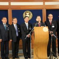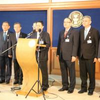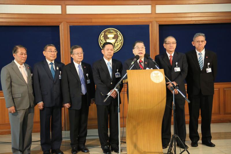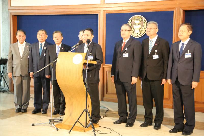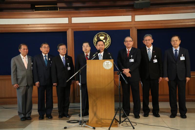 ประธานกรรมาธิการขับเคลื่อนการปฏิรูปประเทศด้านการบริหารแผ่นดิน และประธานกรรมาธิการการบริหารราชการแผ่นดิน สนช. ร่วมกันแถลงข่าวภายหลังการประชุม