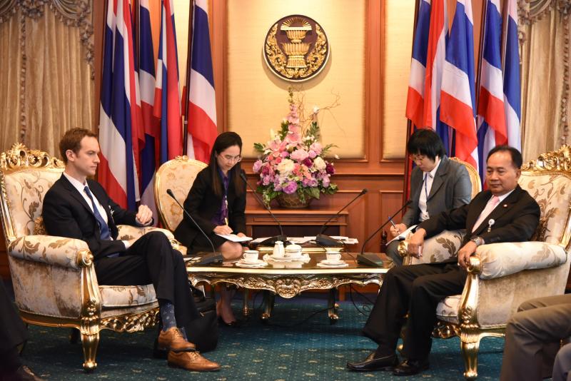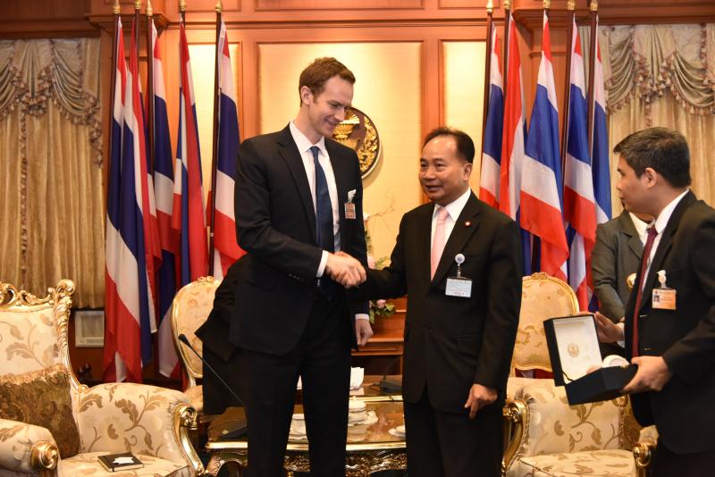 คณะกรรมาธิการขับเคลื่อนฯ ด้านการเมือง ให้การต้อนรับและแลกเปลี่ยนความคิดเห็นกับ Mr.Matt Hays Country Director ของ Thailand IRI และMr. Skyler Witet Director ของ SOSRES
