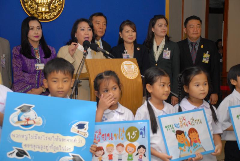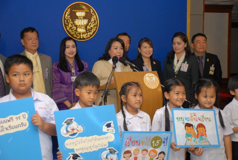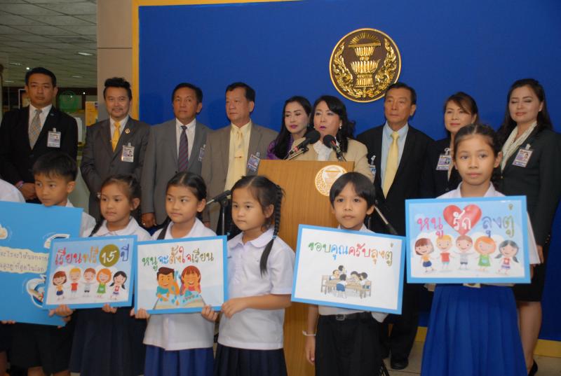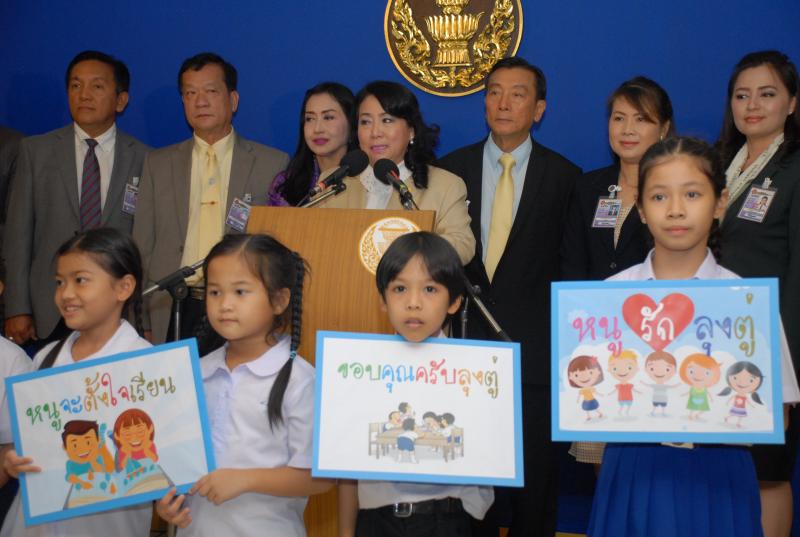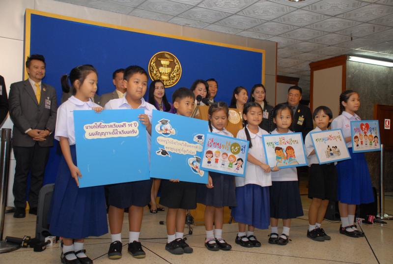 พร้อมกันนี้ ขอนำเสนอบทเพลงดีใจได้เรียนฟรี (ลุงตู่จัดให้) ซึ่งประพันธ์เนื้อร้องและทำนอง โดยนายพิสุทธิ์ ทรัพย์วิจิตร คณะกรรมการในคณะกรรมการโครงการเสียงปฏิรูปประเทศ เพื่อเป็นการสนับสนุนและเผยแพร่ผลงานการปฏิรูปด้านการศึกษาของรัฐบาล