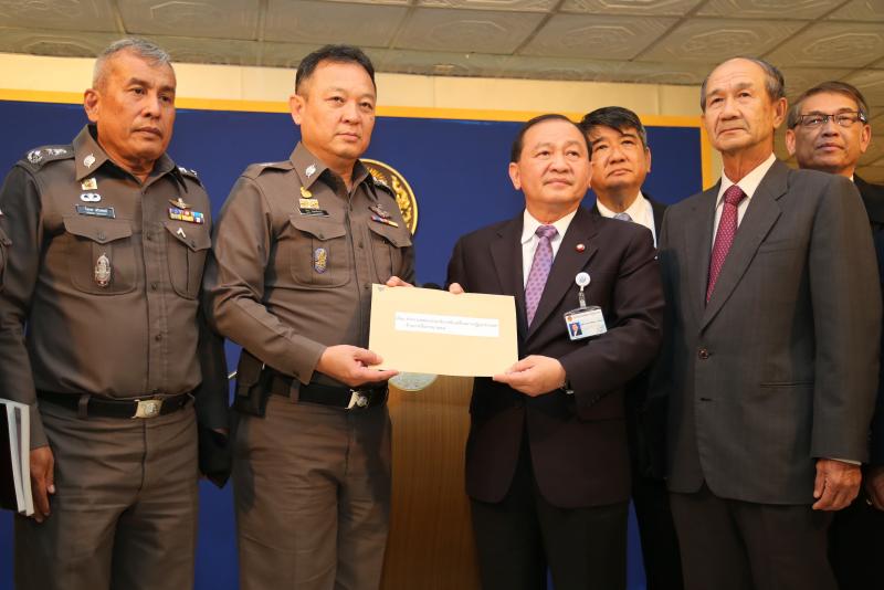 และคณะรับยื่นหนังสือจาก พลตำรวจโท ศักดา เตชะเกรียงไกร ผู้บัญชาการโรงเรียนนายร้อยตำรวจ และ