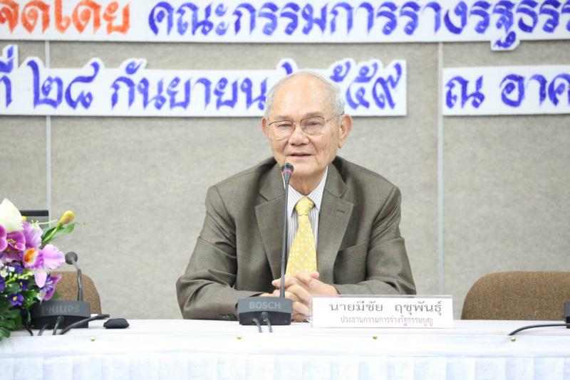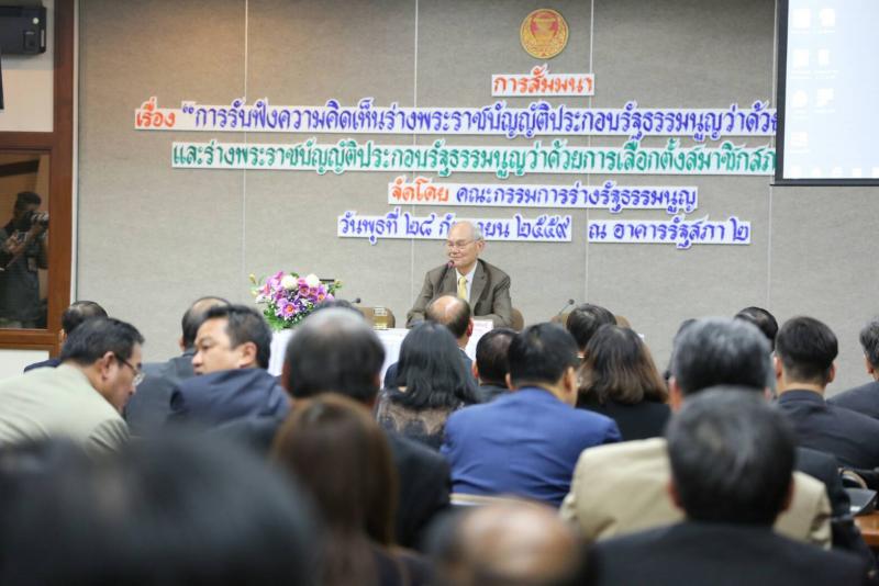 วันพุธที่ ๒๘ กันยายน ๒๕๕๙ เวลา ๑๓.๐๐ นาฬิกา ณ ห้องประชุมคณะกรรมาธิการหมายเลข ๒๑๓ – ๒๑๖ ชั้น ๒อาคารรัฐสภา ๒นายมีชัย ฤชุพันธุ์ ประธานกรรมการร่างรัฐธรรมนูญ เป็นประธานในพิธีเปิดโครงการสัมมนา เรื่อง “การรับฟังความคิดเห็นร่างพระราชบัญญัติประกอบรัฐธรรมนูญว่าด้วยพรรคการเมือง พ.ศ. .... และร่างพระราชบัญญัติประกอบรัฐธรรมนูญว่าด้วยการเลือกตั้งสมาชิกสภาผู้แทนราษฎร พ.ศ. ....โดยมีวัตถุประสงค์เพื่อให้ผู้เข้าร่วมสัมมนาได้แสดงความคิดเห็นเกี่ยวกับร่างพระราชบัญญัติประกอบรัฐธรรมนูญว่าด้วยพรรคการเมือง พ.ศ. .... และร่างพระราชบัญญัติประกอบรัฐธรรมนูญว่าด้วยการเลือกตั้งสมาชิกสภาผู้แทนราษฎร พ.ศ. .... รวมทั้งให้ผู้เข้าร่วมสัมมนามีความรู้  ความเข้าใจเกี่ยวกับร่างพระราชบัญญัติประกอบรัฐธรรมนูญทั้งสองฉบับทั้งนี้ได้มีการนำเสนอความคิดเห็นต่อร่างพระราชบัญญัติประกอบรัฐธรรมนูญทั้งสองฉบับโดยผู้แทนจากคณะกรรมการการเลือกตั้ง ประกอบด้วยดร.ประวิช รัตนเพียร กรรมการการเลือกตั้ง  พันตำรวจเอก จรุงวิทย์ ภุมมา ผู้ทรงคุณวุฒิ และพันโท สดุดี ภวภูตานนท์ ณ มหาสารคาม ผู้อำนวยการสำนักกิจการพรรคการเมืองดำเนินรายการโดย นายชาติชาย ณ เชียงใหม่ โฆษกกรรมการร่างรัฐธรรมนูญ ต่อมานายเสรี สุวรรณภานนท์ ประธานกรรมาธิการขับเคลื่อนการปฏิรูปประเทศด้านการเมือง ได้แสดงความคิดเห็นในมุมมองของสภาขับเคลื่อนการปฏิรูปประเทศ จากนั้นเป็นการรับฟังความคิด  จากผู้เข้าร่วมสัมมนาซึ่งคณะกรรมการร่างรัฐธรรมนูญจะรับข้อมูลที่หลากหลายเพื่อนำไปพิจารณาร่างพระราชบัญญัติประกอบรัฐธรรมนูญทั้งสองฉบับ ให้มีความสมบูรณ์มากยิ่งขึ้น