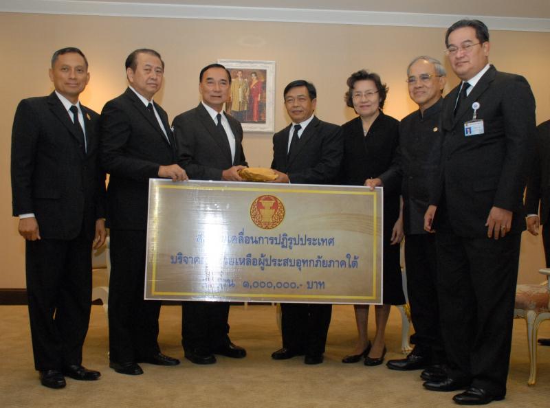มอบเงินบริจาคเพื่อช่วยเหลือผู้ประสบอุทกภัยภาคใต้ต่อนายกรัฐมนตรี