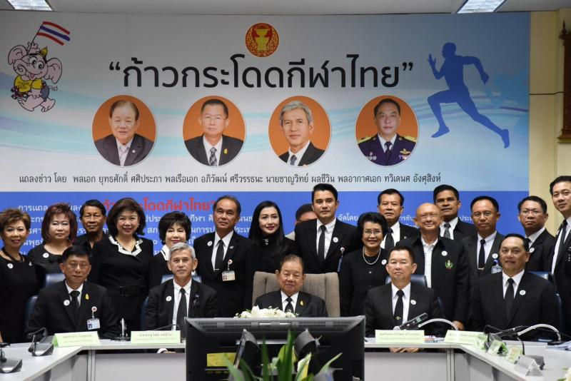 ด้านกีฬา ศิลปะ วัฒนธรรม การศาสนา คุณธรรม และจริยธรรม เป็นประธานในการแถลงข่าว "ก้าวกระโดดกีฬาไทย"