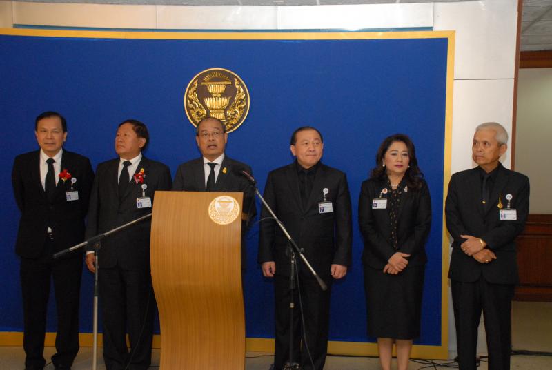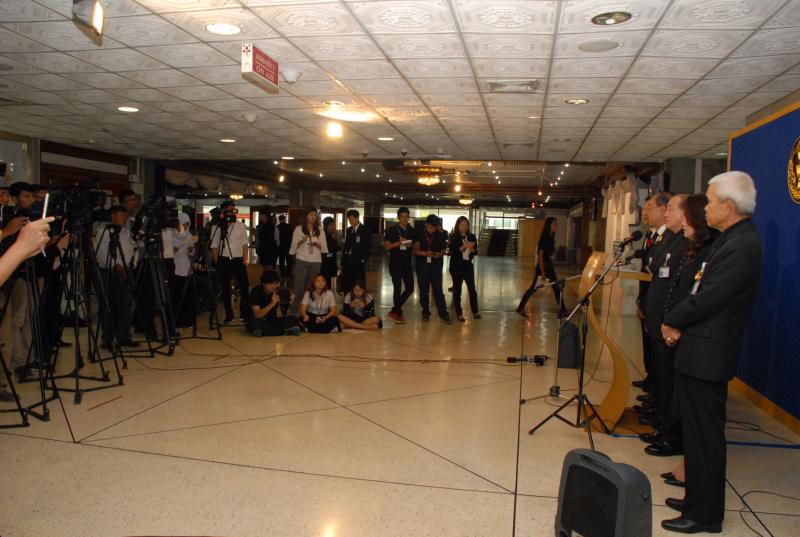 และคณะ ร่วมกันแถลงข่าว เรื่อง พ.ร.บ. สภาวิชาชีพสื่อมวลชน ประกอบไปด้วยกรรมการ ๑๓ คน