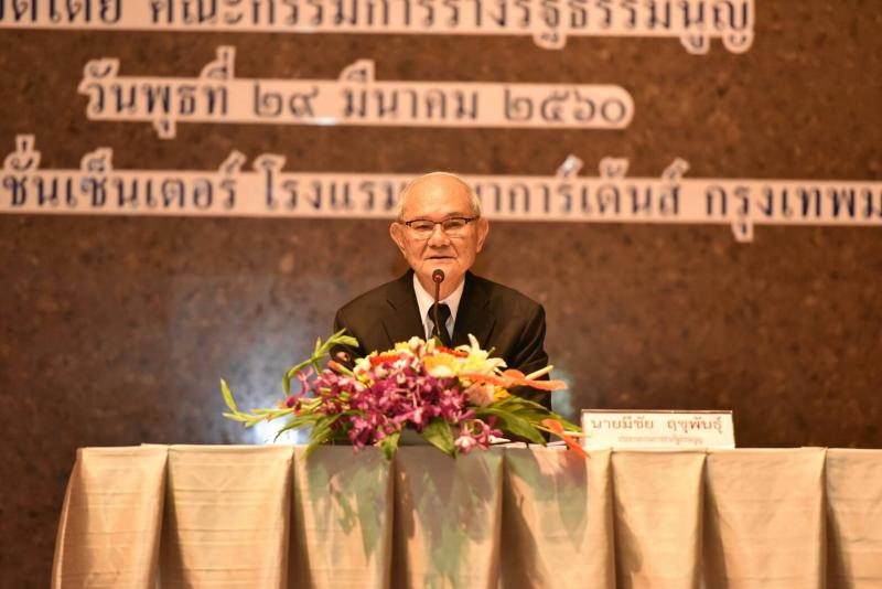 วันพุธที่ ๒๙ มีนาคม ๒๕๖๐เวลา ๐๙.๐๐ นาฬิกา ณ ห้องคอนเวนชั่นเซ็นเตอร์ โรงแรมรามาการ์เด้นส์ ถนนวิภาวดีรังสิต หลักสี่ กรุงเทพฯ นายมีชัย ฤชุพันธุ์ ประธานกรรมการร่างรัฐธรรมนูญ เป็นประธานในพิธีเปิดการสัมมนา เรื่อง การรับฟังความคิดเห็นร่างพระราชบัญญัติประกอบรัฐธรรมนูญว่าด้วยการป้องกันและปราบปรามการทุจริต พ.ศ. .... จัดโดย คณะกรรมการร่างรัฐธรรมนูญ มีกลุ่มเป้าหมายจำนวน ๓๕๐ คน ประกอบด้วยภาคการเมือง หน่วยงานราชการ รัฐวิสาหกิจ องค์กรปกครองส่วนท้องถิ่น ภาคเอกชน องค์กรตรวจสอบ ภาคประชาสังคม สื่อมวลชน และนักวิชาการอิสระโดย นายมีชัย ฤชุพันธุ์ ประธานกรรมการร่างรัฐธรรมนูญได้กล่าวตอนหนึ่งว่าการรับฟังความคิดเห็น ร่างพระราชบัญญัติประกอบรัฐธรรมนูญว่าด้วยการป้องกันและปราบปรามการทุจริต พ.ศ. .... ถือเป็นกฎหมายที่มีความสำคัญที่สุดและเป็นหัวใจของ รธน. นี้ เพราะเป็นกฎหมายที่กำหนดการป้องกันและปราบปรามการทุจริตทั่วประเทศที่ก่อให้เกิดความเดือดร้อนกับประชาชน ให้ประสบผลสำเร็จอย่างมีประสิทธิภาพ สุจริตและรวดเร็ว ซึ่งการสัมมนาในครั้งนี้ จัดขึ้นโดยมีวัตถุประสงค์เพื่อให้ผู้เข้าร่วมสัมมนามีความรู้ และได้แสดงความคิดเห็นเกี่ยวกับร่างพระราชบัญญัติประกอบรัฐธรรมนูญว่าด้วยการป้องกันและปราบปรามการทุจริต พ.ศ. ....รวมทั้งเพื่อให้คณะกรรมการร่างรัฐธรรมนูญได้รับข้อมูลที่หลากหลายเพื่อนำไปประกอบการพิจารณาร่างพระราชบัญญัติประกอบรัฐธรรมนูญว่าด้วยการป้องกันและปราบปรามการทุจริต พ.ศ. .... จากนั้นในเวลา ๐๙.๔๕ นาฬิกา เป็นการอภิปรายนำเสนอความคิดเห็นต่อร่างพระราชบัญญัติประกอบรัฐธรรมนูญว่าด้วยการป้องกันและปราบปรามการทุจริต พ.ศ. .... โดยมีผู้ร่วมอภิปรายดังนี้ ๑. พลตำรวจเอก วัชรพล ประสารราชกิจประธานกรรมการ ป.ป.ช. ๒. นางเมธินี เทพมณี เลขาธิการคณะกรรมการข้าราชการพลเรือน ๓. ศาสตราจารย์พิเศษวิชา มหาคุณ ๔. พลอากาศเอก วีรวิท คงศักดิ์ ดำเนินรายการโดยนายชาติชาย ณ เชียงใหม่ กรรมการร่างรัฐธรรมนูญ |