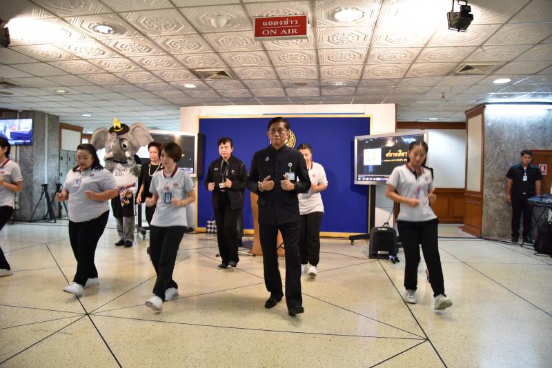 กราวกีฬาจังหวะสามช่า เพื่อใช้ในการออกกำลังกายทั่วประเทศ ในตอนท้ายของการแถลงข่าวพลเอก จิระ โกมุทพงศ์