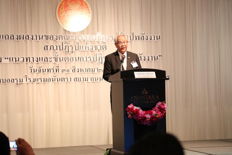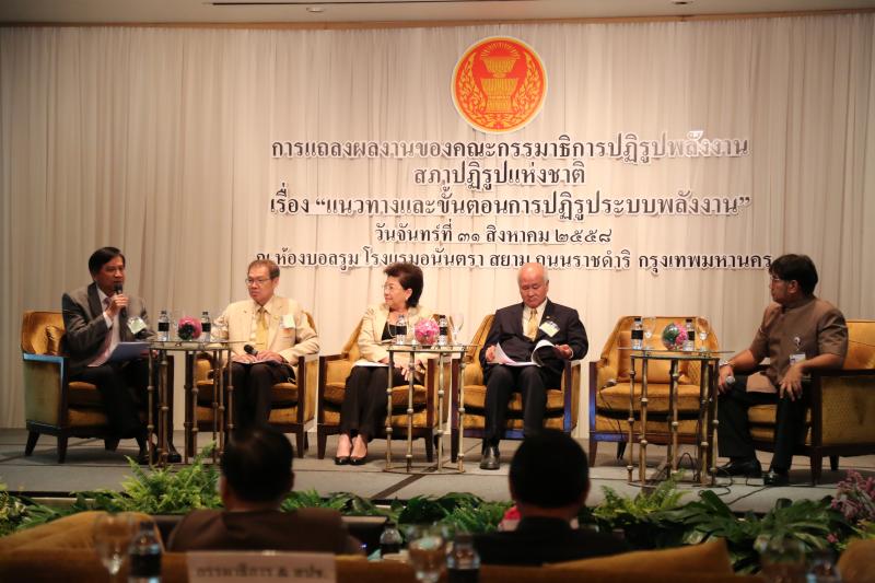วันจันทร์ที่ ๓๑ สิงหาคม ๒๕๕๘ เวลา ๐๙.๑๐ นาฬิกา ณ ห้องบอลรูม โรงแรมอนันตรา สยาม ถนนราชดำริ เขตปทุมวัน กรุงเทพมหานคร นายทองฉัตร หงศ์ลดารมภ์ ประธานกรรมาธิการปฏิรูปพลังงาน เป็นประธานเปิดงานแถลงผลงานของคณะกรรมาธิการปฏิรูปพลังงาน สภาปฏิรูปแห่งชาติ เรื่อง แนวทางและขั้นตอนการปฏิรูประบบพลังงาน โดยมีนายศิริ จิระพงษ์พันธ์ เลขานุการคณะกรรมาธิการปฏิรูปพลังงาน เป็นผู้กล่าวรายงาน จากนั้น เป็นการอภิปรายในประเด็นการปฏิรูประบบพลังงาน โดยคณะกรรมาธิการฯ และคณะอนุกรรมาธิการฯ ดำเนินการการอภิปราย โดย นายอนุสรณ์ แสงนิ่มนวล และนายธรณ์ ธำรงนาวาสวัสดิ์ โฆษกกรรมาธิการ ซึ่งในช่วงบ่ายเป็นการสรุปการอภิปราย โดย นายคุรุจิต นาครทรรพ รองประธานกรรมาธิการ คนที่หนึ่ง