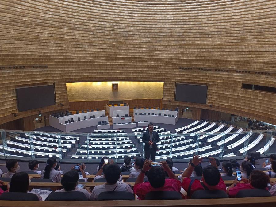 วันพุธที่ 8 มีนาคม 2566 เวลา 09.00 นาฬิกา คณะนักเรียนพร้อมทั้งผู้บริหารและครูผู้รับผิดชอบงงานสภานักเรียน โรงเรียนสะอาดเผดิมวิทยา อำเภอเมือง จังหวัดชุมพร จำนวน 40 คน เข้าเยี่ยมชมรัฐสภา