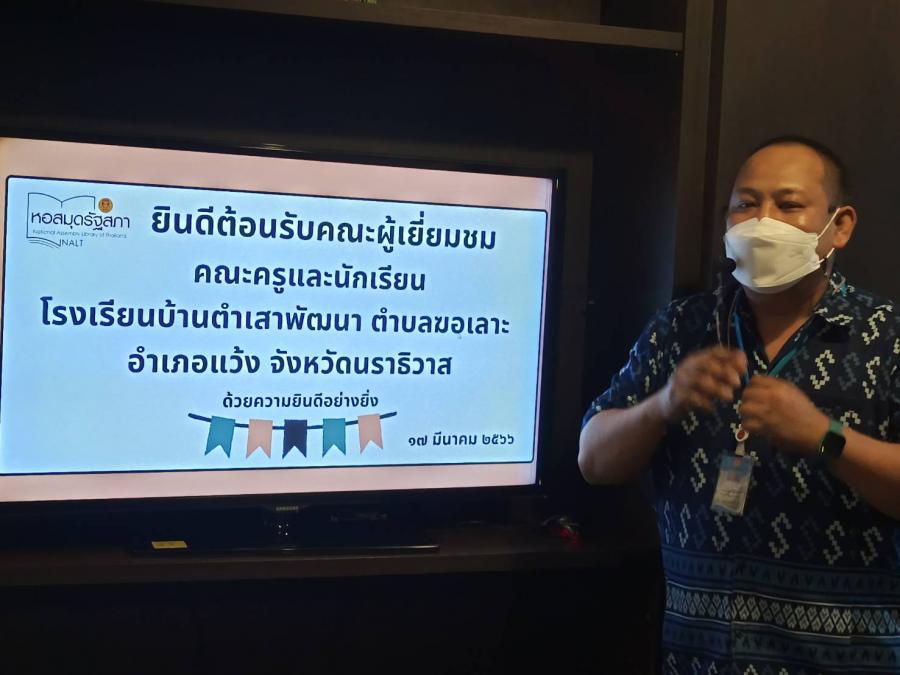 วันศุกร์ที่ 17 มีนาคม 2566 เวลา 10.45 นาฬิกา คณะครูและนักเรียน โรงเรียนบ้านตำเสาพัฒนา ตำบลฆอเลาะ อำเภอแว้ง จังหวัดนราธิวาส จำนวน 39 คน เข้าเยี่ยมชมรัฐสภา