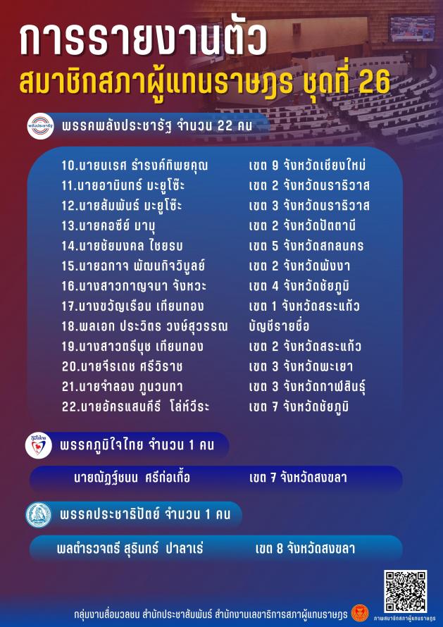 สรุปภาพรวมการรายงานตัวสมาชิกสภาผู้แทนราษฎร ชุดที่ 26 วันแรก