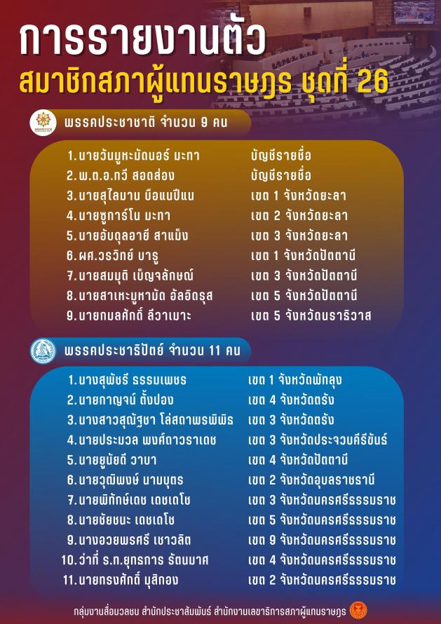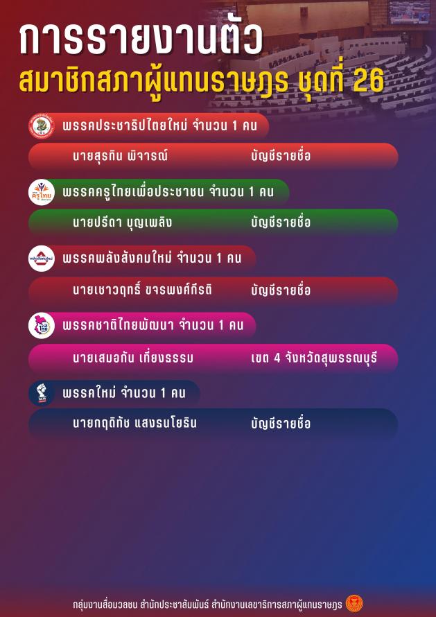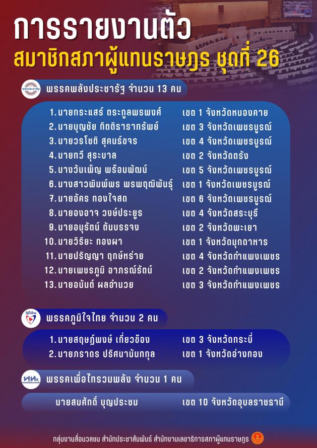 วันที่สองของการรับรายงานตัวสมาชิกสภาผู้แทนราษฎร ชุดที่ 26 ระหว่างเวลา 15.00 18.00 นาฬิกา