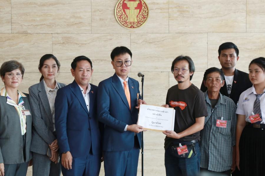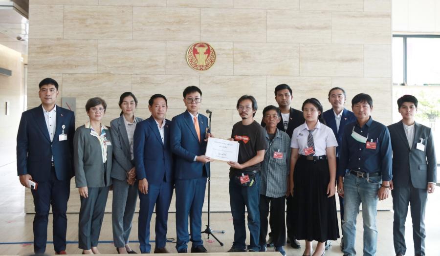 นายชุติพงศ์ พิภพภิญโญ สส.จังหวัดระยอง พรรคก้าวไกล และคณะ รับยื่นหนังสือจากนายตาล วรรณกุล ตัวแทนศูนย์ศึกษาเรียนรู้ช้างป่าตะวันออก เพื่อเสนอเชิงนโยบายการจัดการปัญหาช้างป่าตะวันออกอย่างยั่งยืน