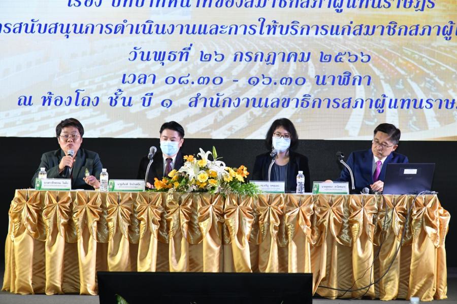การบรรยายในหัวข้อต่าง ๆ ในโครงการสัมมนาเรื่อง บทบาทหน้าที่ของสมาชิกสภาผู้แทนราษฎรกับการสนับสนุนการดำเนินงานและการให้บริการแก่สมาชิกสภาผู้แทนราษฎร