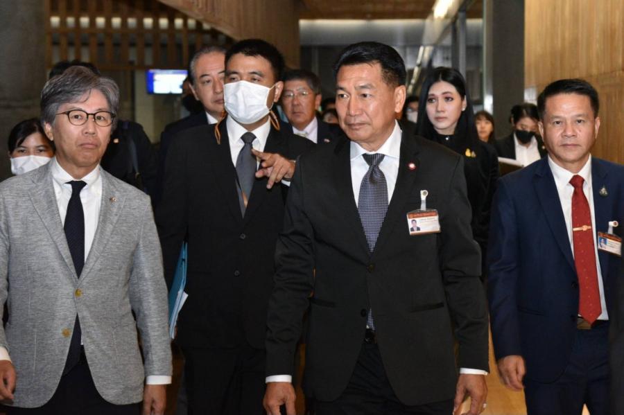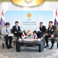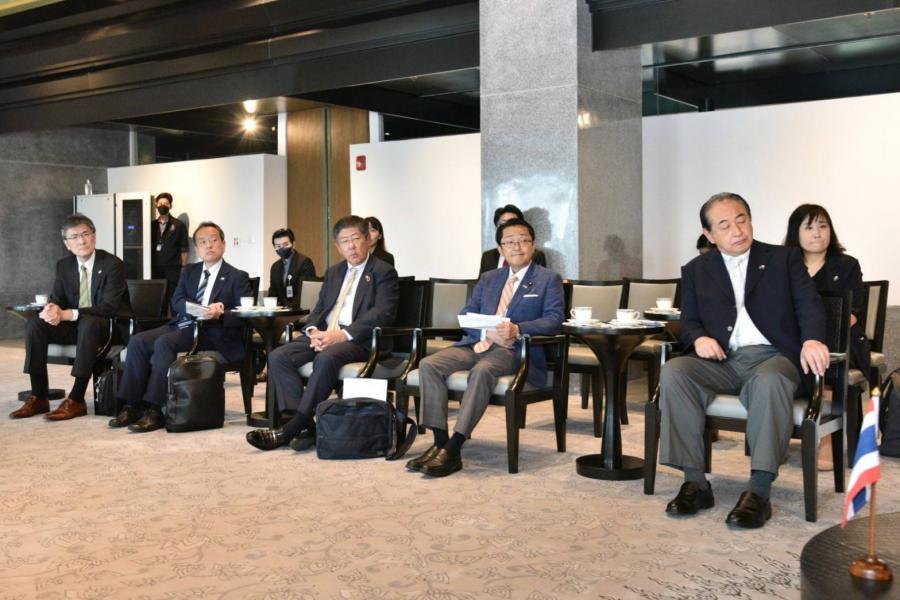 ด้านประธานคณะกรรมาธิการฯ ได้กล่าวขอบคุณรองประธานสภาฯ คนที่สอง ที่ได้ให้การต้อนรับ และรู้สึกเป็นเกียรติที่เป็นคณะผู้แทนรัฐสภาจากญี่ปุ่นชุดแรกที่เดินทางมาเยือนรัฐสภาไทยในครั้งนี้ พร้อมกล่าวถึงความสัมพันธ์ในระดับของรัฐสภาว่ามีความแน่นแฟ้นผ่านการจัดตั้งกลุ่มมิตรภาพสมาชิกรัฐสภาของทั้งสองประเทศ ซึ่งมีการแลกเปลี่ยนการเยือนระหว่างกันอย่างสม่ำเสมอ โดยในด้านการเมือง ประธานคณะกรรมาธิการฯ หวังว่าการเลือกนายกรัฐมนตรีจะผ่านไปได้ด้วยดี นอกจากนี้ ยังแสดงความเห็นว่า ผู้ที่ทำหน้าที่ประสานงานด้านการเมืองถือเป็นบุคคลที่สำคัญ เพราะเป็นผู้อยู่เบื้องหลังที่จะทำงานด้านการเมืองให้สำเร็จลุล่วงไปด้วยดี นอกจากนี้ยังได้เชิญชวนให้นายกรัฐมนตรีของไทยเข้าร่วมการเฉลิมฉลองความสัมพันธ์ญี่ปุ่น-อาเซียน ครบรอบ 50 ปี ในเดือนธันวาคม 2566 ที่ญี่ปุ่นเป็นเจ้าภาพ
