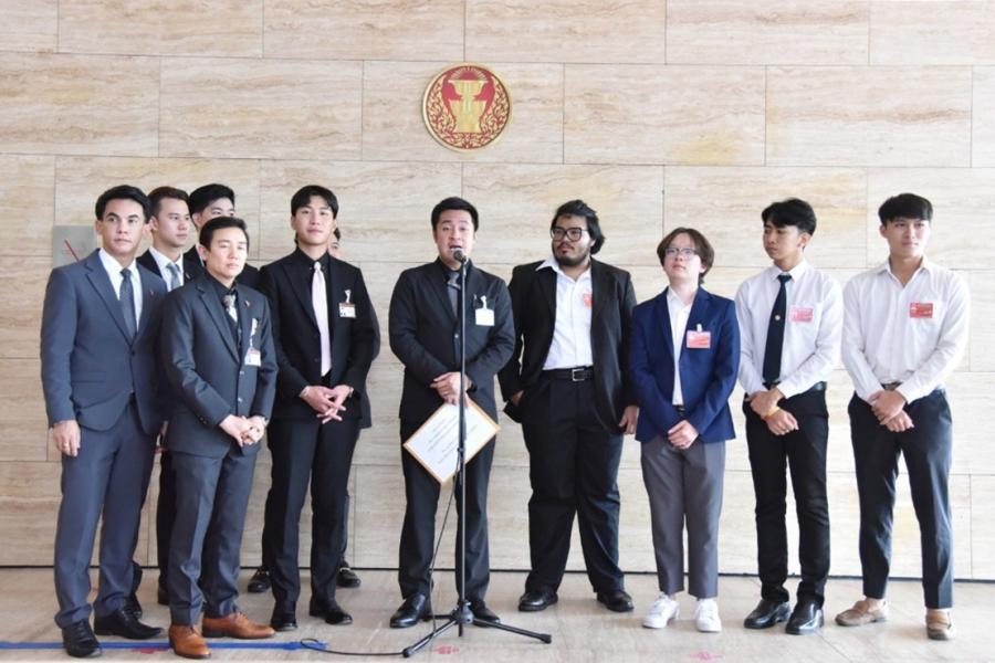 วันพุธที่ 9 สิงหาคม 2566 เวลา 11.55 นาฬิกา ณ จุดรับยื่นหนังสือ ชั้น 1 (โซนกลาง) อาคารรัฐสภา นายปดิพัทธ์ สันติภาดา รองประธานสภาผู้แทนราษฎร คนที่หนึ่ง พร้อมด้วย ส.ส.พรรคก้าวไกล พรรคชาติไทยพัฒนา และพรรคประชาชาติ รับยื่นหนังสือจาก นายนัสรี พุ่มเกื้อ ประธานสภานักศึกษามหาวิทยาลัยธรรมศาสตร์ ในฐานะตัวแทนองค์กรนิสิตนักศึกษาจำนวน 32 องค์กร เพื่อขอคัดค้านร่าง พ.ร.บ.สภาผู้แทนนิสิตนักศึกษาแห่งประเทศไทย พ.ศ. ....