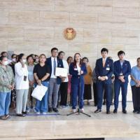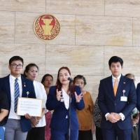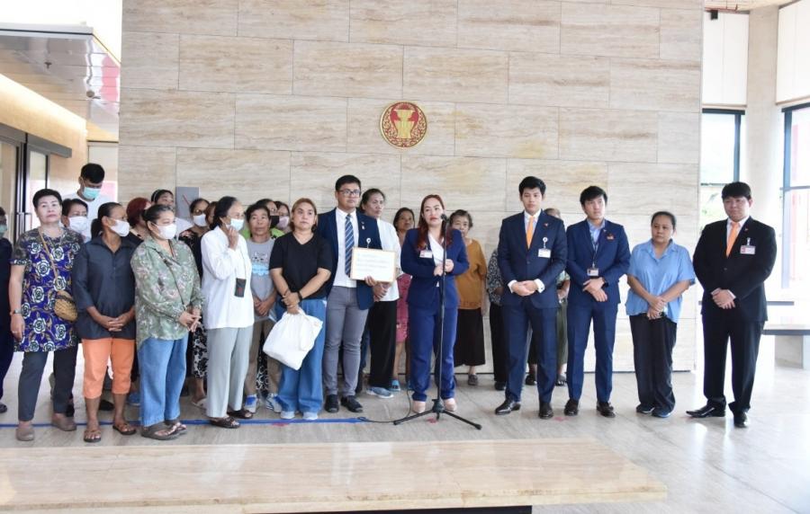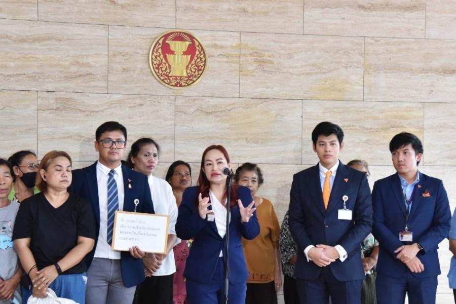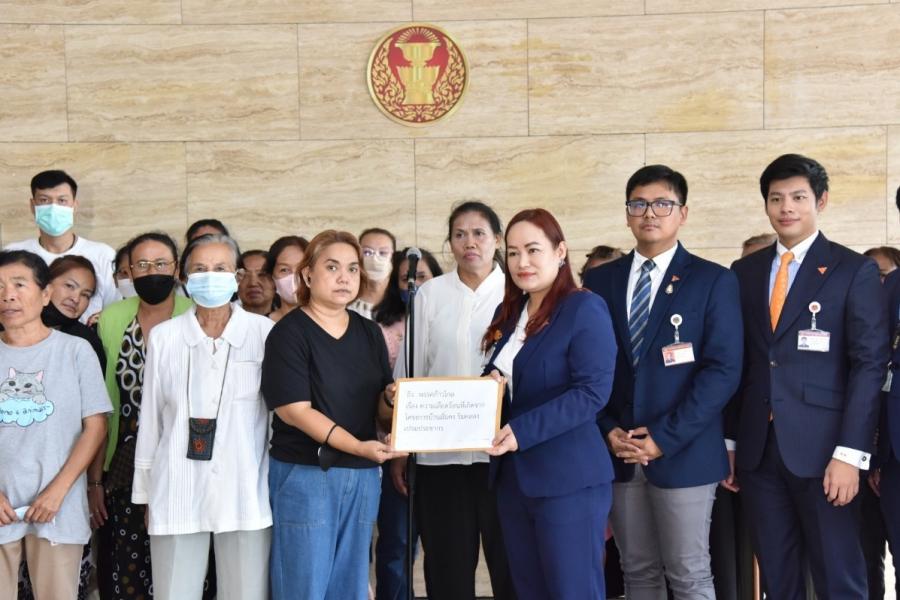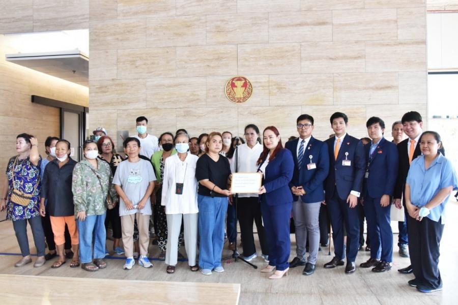 น.ส.วรรณวิภา ไม้สน สส.พรรคก้าวไกล และคณะ รับยื่นหนังสือจาก น.ส.ทิพวรรณ แสงฝาก ตัวแทนผู้ที่ได้รับความเดือดร้อนจากโครงการบ้านมั่นคง และคณะ