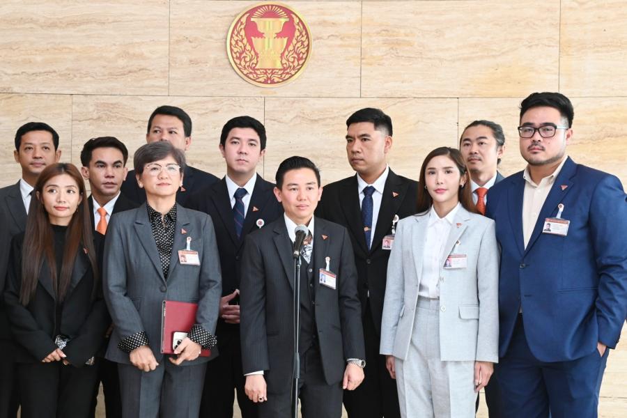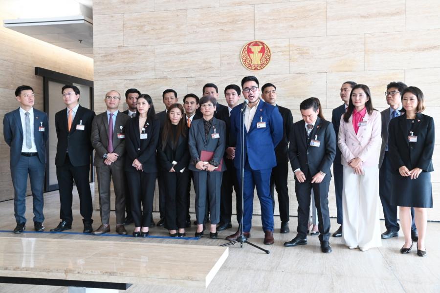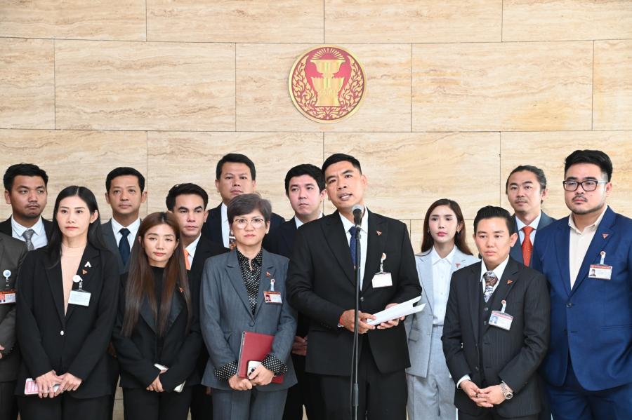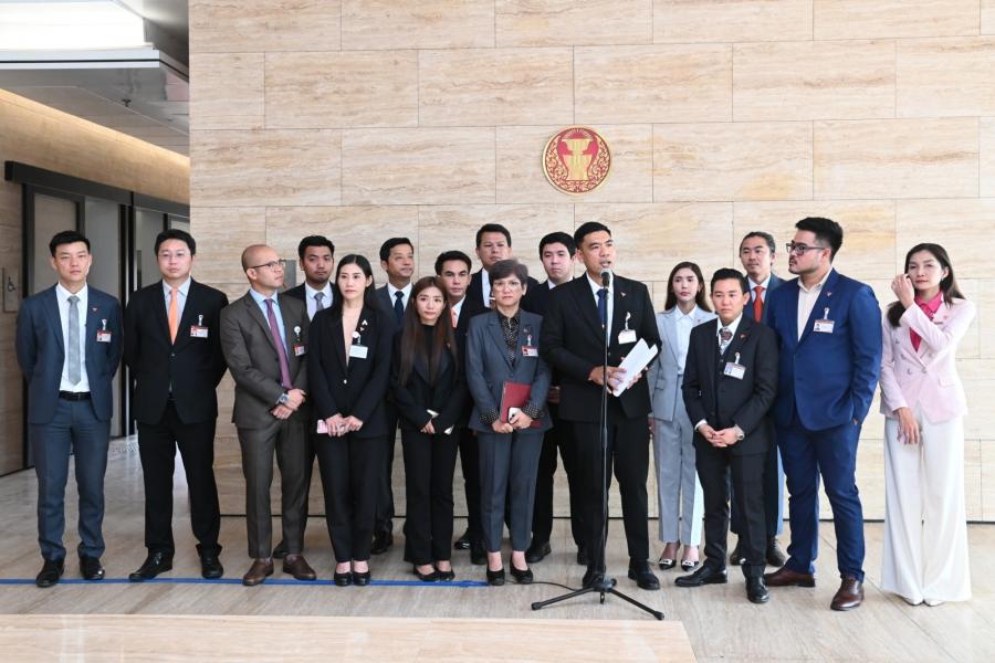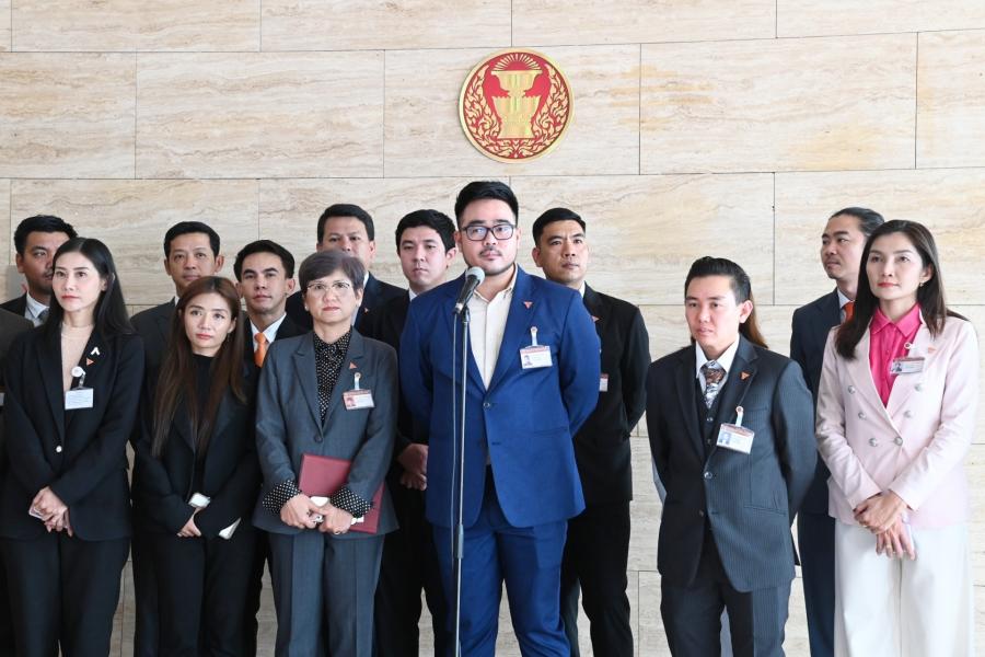 สส. พรรคก้าวไกล และคณะ แถลงข่าวกรณีน้ำมันที่รั่วไหลลงสู่ทะเลในพื้นที่ อ.ศรีราชา จ.ชลบุรี จากเหตุน้ำมันดิบจากเรือบรรทุกน้ำมัน รั่วไหลขณะขนถ่ายน้ำมันดิบบริเวณทุ่นผูกเรือกลางทะเล หมายเลข 2 (SBM-2) ของโรงกลั่นน้ำมันไทยออยล์