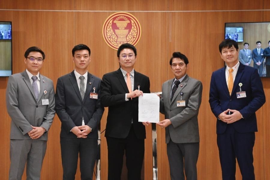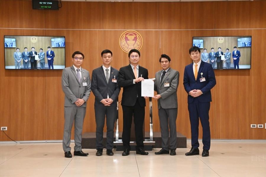 นายคัมภีร์ ดิษฐากรณ์ โฆษกประธานสภาผู้แทนราษฎร รับยื่นหนังสือจาก นายวรภพ วิริยะโรจน์ สส. พรรคก้าวไกล และคณะ เรื่อง ร่างพระราชบัญญัติล้มละลาย (ฉบับที่ ..) พ.ศ. ....