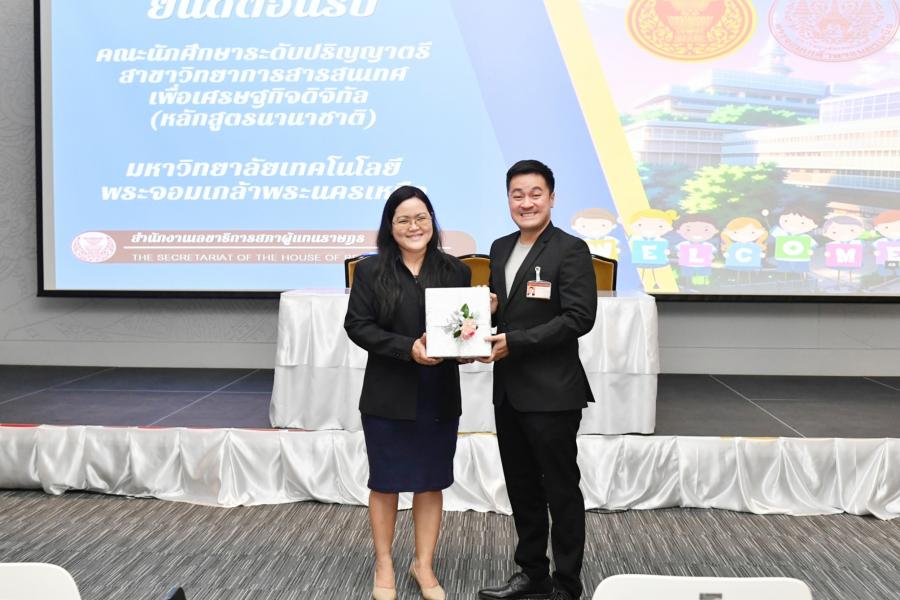 รองประธานสภาผู้แทนราษฎร คนที่หนึ่ง ให้การต้อนรับ อาจารย์ประจำภาควิชาวิทยาการสารสนเทศเพื่อเศรษฐกิจดิจิทัล (หลักสูตรนานาชาติ) ภาควิชาเทคโนโลยีสารสนเทศคณะเทคโนโลยีสารสนเทศและนวัตกรรมดิจิทัล มหาวิทยาลัยเทคโนโลยีพระจอมเกล้าพระนครเหนือ และคณะนักศึกษา ในโอกาสศึกษาดูงาน ณ รัฐสภา