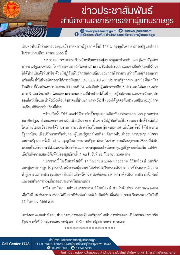 รัฐสภาระหว่างประเทศ Inter Parliament Affairs