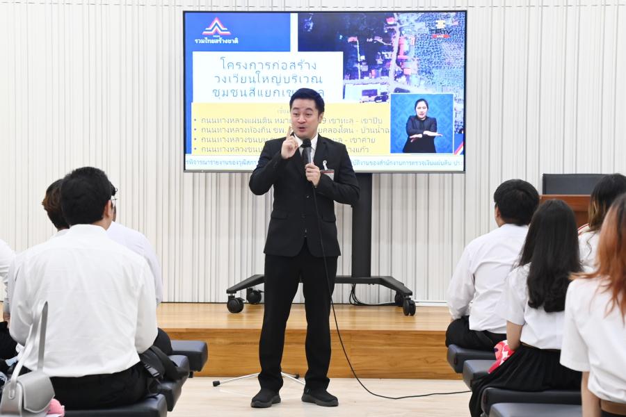 วันอังคารที่ 20 กันยายน 2566 เวลา 09.30 นาฬิกา ณ ห้องบรรยายใหญ่ B1-1 ชั้น B1 อาคารรัฐสภา นายปดิพัทธ์ สันติภาดา รองประธานสภาผู้แทนราษฎร คนที่หนึ่ง ให้การต้อนรับคณะนักศึกษากลุ่มโครงการเผยแพร่วิชานิติศาสตร์ (คพน.) ของศูนย์นิติศาสตร์ คณะนิติศาสตร์ มหาวิทยาลัยธรรมศาสตร์ ในโอกาสเดินทางมาศึกษาดูงาน เยี่ยมชมรัฐสภา และรับฟังการประชุมสภาผู้แทนราษฎร