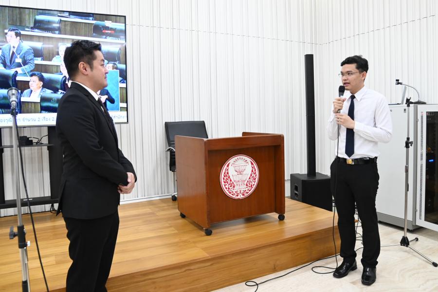 รองประธานสภาผู้แทนราษฎร คนที่หนึ่ง ให้การต้อนรับคณะนักศึกษากลุ่มโครงการเผยแพร่วิชานิติศาสตร์ ของศูนย์นิติศาสตร์ คณะนิติศาสตร์ มหาวิทยาลัยธรรมศาสตร์ ในโอกาสเดินทางมาศึกษาดูงาน เยี่ยมชมรัฐสภา และรับฟังการประชุมสภาผู้แทนราษฎร