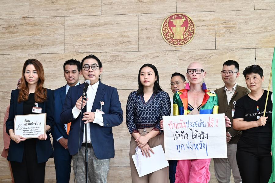 วันพุธที่ 20 กันยายน 2566 เวลา 13.00 นาฬิกา ณ จุดรับยื่นหนังสือ ชั้น 1 (โซนกลาง) อาคารรัฐสภา นายธัญวัจน์ กมลวงศ์วัฒน์ น.ส.กัลยพัชร รจิตโรจน์ สส.พรรคก้าวไกล และคณะ รับยื่นหนังสือจาก น.ส.สุพีชา เบาทิพย์ ผู้แทนกลุ่มทำทางและเครือข่ายทำแท้งปลอดภัย เรื่อง ขอเสนอแนวทางการผลักดันการบังคับใช้กฎหมายทำแท้งฉบับใหม่ ให้ตอบสนองต่อความเดือดร้อนของประชาชนอย่างแท้จริง การทำแท้งที่ปลอดภัย จัดเป็นบริการสาธารณสุขพื้นฐานจำเป็น ซึ่งเป็นหนึ่งในยุทธศาสตร์ อนามัยเจริญพันธุ์ที่สำคัญของขององค์การอนามัยโลก ที่จะทำให้ประเทศบรรลุเป้าหมายการพัฒนาที่ยั่งยืนขององค์การสหประชาชาติ (SDG) ภายใต้เป้าหมายการพัฒนาที่ 3 การสร้างหลักประกันการมีสุขภาวะที่ดี และสร้างการมีความเป็นอยู่ที่ดีสำหรับคนในทุกช่วงวัย โดยเสนอการแก้ไขเพิ่มประมวลกฎหมายอาญา มาตรา 301 และ 305 เกี่ยวกับการยุติการตั้งครรภ์ภายใน 12 สัปดาห์ และเงื่อนไขจาก 12 - 20 สัปดาห์ ต้องเป็นไปตามหลักเกณฑ์ของแพทยสภา ที่กฎหมายผ่านเมื่อสภาผู้แทนราษฎรชุดที่แล้ว เมื่อเดือน ก.พ.64 แต่วันนี้ยังเป็นปัญหาในการบังคับใช้กฎหมาย จึงทำให้ผู้หญิงที่ท้องโดยไม่พร้อม ได้มีการทำแท้งผิดกฎหมายและมีอันตรายถึงชีวิต จึงขอเสนอ ให้ สส.ดำเนินการดังนี้ 1) ต้องมีการสำรวจตัวเลขสถานการณ์การทำแท้งที่เป็นจริง 2) เพิ่มสถานบริการให้ครอบคลุมทุกจังหวัด เพื่อลดภาระจังหวัดที่ให้บริการ และลดภาระการที่ประชาชนต้องเดินทางไปรับบริการต่างจังหวัด 3) บังคับใช้กฎหมายทำแท้งฉบับใหม่ ให้สถานบริการสาธารณสุขของรัฐต้องให้บริการยุติการตั้งครรภ์ที่ปลอดภัยโดยไม่เสียค่าใช้จ่าย ตามที่สำนักงานหลักประกันสุขภาพแห่งชาติ (สปสช.) ได้สนับสนุนงบประมาณครั้งละ 3,000 บาท อย่างน้อยจังหวัดละ 1 แห่ง 4) ลดอคติของบุคลากรทางการแพทย์ เพื่อให้เข้าใจข้อเท็จจริงเรื่องความปลอดภัย ความจำเป็นเรื่องการทำแท้งปลอดภัย 5) สร้างความเข้าใจในสังคมทั่วไป ว่า การทำแท้งเป็นบริการสุขภาพที่จำเป็นที่รัฐต้องจัดให้มีบริการ เข้าถึงได้ง่าย ปลอดภัยและเป็นเรื่องสิทธิของผู้รับบริการ รวมทั้งให้ข้อมูลที่ชัดเจนเกี่ยวกับสถานบริการที่มีอยู่ รวมถึงสิทธิในการเข้ารับบริการ