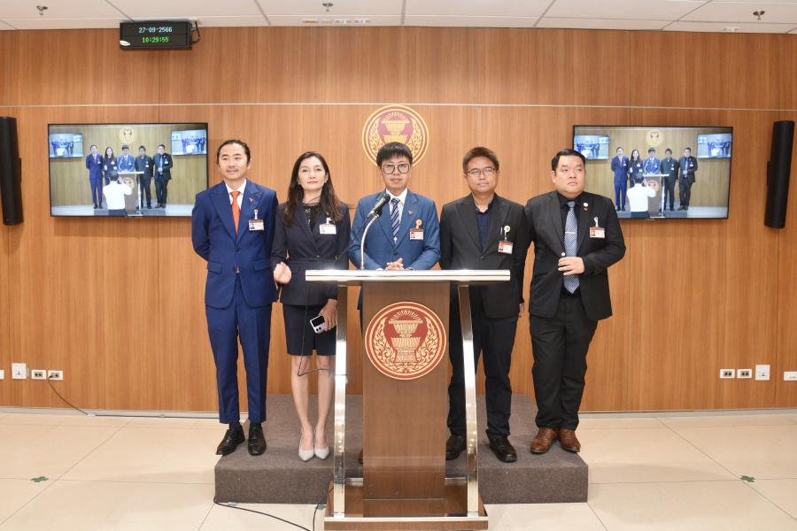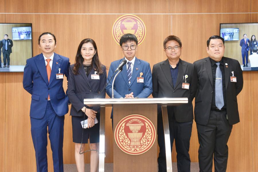 นายชุติพงศ์ พิภพภิญโญ สส.พรรคก้าวไกล และคณะ แถลงข่าวกรณียื่นญัตติขอให้สภาผู้แทนราษฎรตั้งคณะกรรมาธิการวิสามัญเพื่อศึกษาปัญหาช้างป่าอย่างยั่งยืน