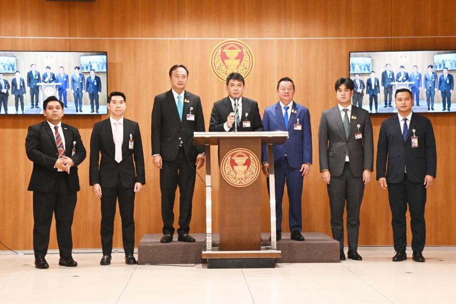นายสฤษฏ์พงษ์ เกี่ยวข้อง สส.พรรคภูมิใจไทย และคณะ แถลงข่าว เรียกร้องให้นายเศรษฐา ทวีสิน นายกรัฐมนตรีและรัฐมนตรีว่าการกระทรวงการคลัง เปิดคาสิโนอย่างถูกกฎหมาย