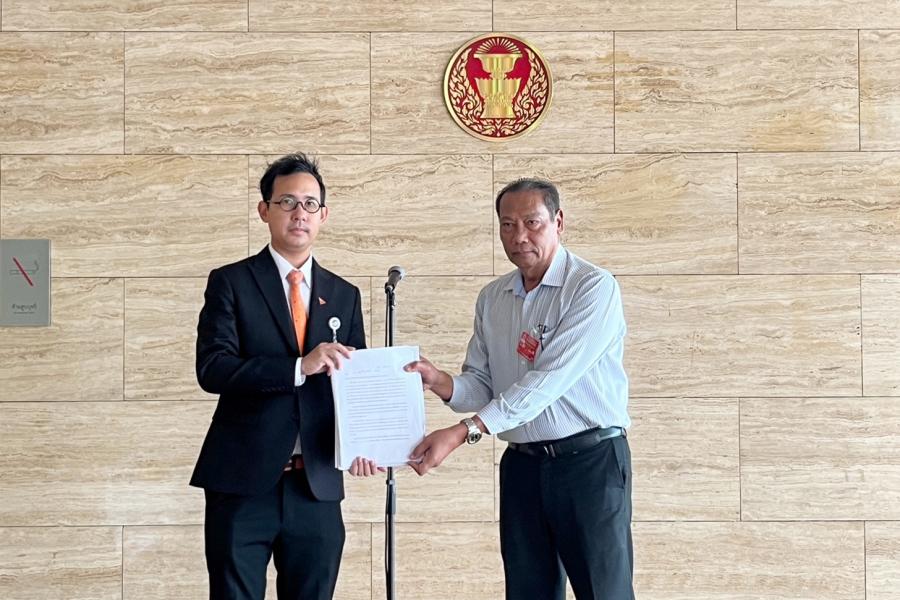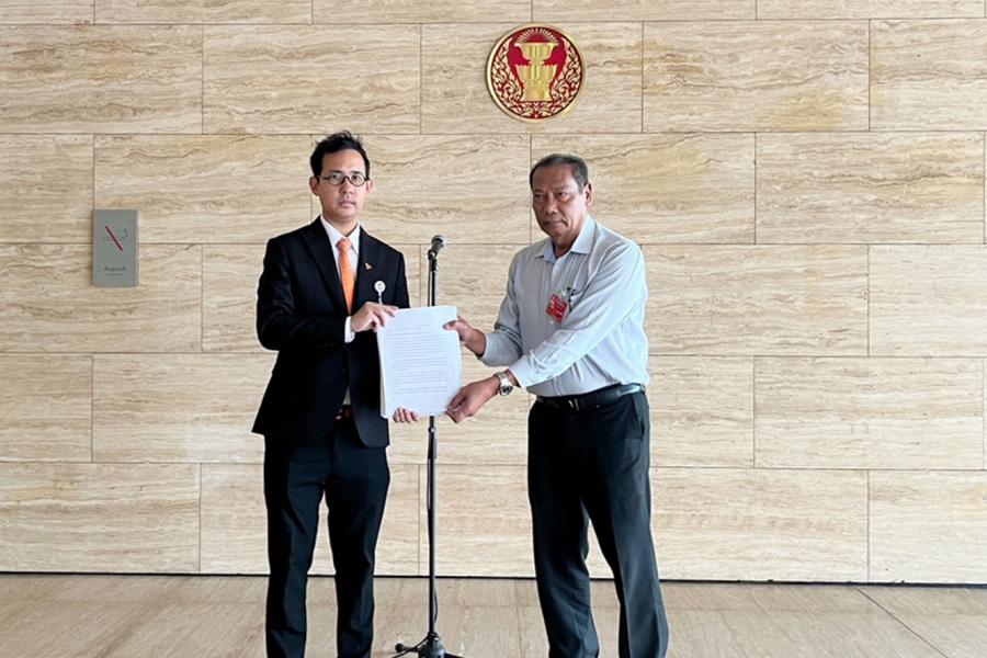 นายวีรภัทร คันธะ สส.พรรคก้าวไกล รับยื่นหนังสือจากนายเกษม ถาวรนุวงศ์ ประธานหมู่บ้านสวนมหาวงษ์ เรื่อง ขอความเป็นธรรม และช่วยเหลือความเดือดร้อนของพ่อค้าแม่ค้าละสมาชิกหมู่บ้านมหาวงศ์ พระปะแดง จังหวัดสมุทรปราการ