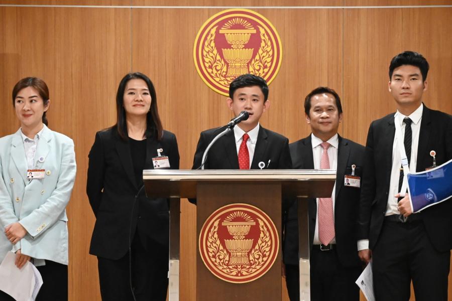 นายอนุสรณ์ เอี่ยมสะอาด กมธ.การสื่อสาร โทรคมนาคม และดิจิทัล เพื่อเศรษฐกิจและสังคม และที่ปรึกษาคณะ กมธ. และคณะ แถลงข่าวภายหลังการประชุมคณะ กมธ.