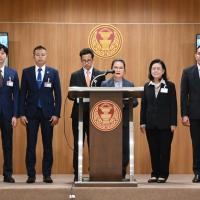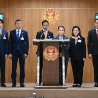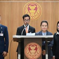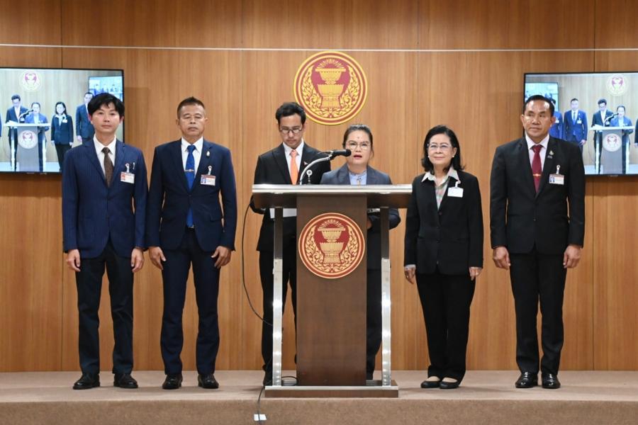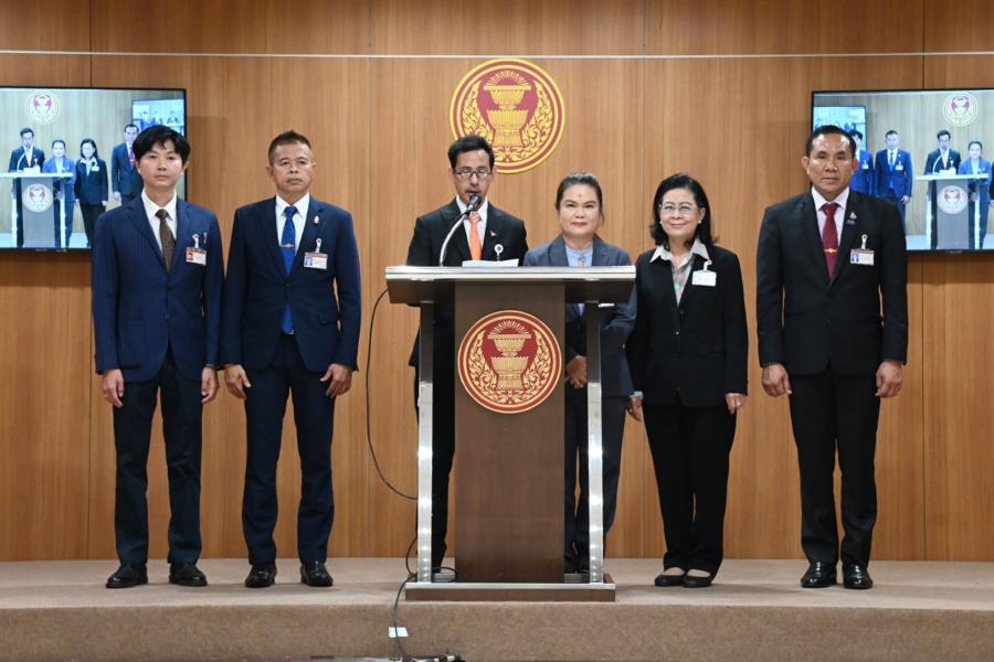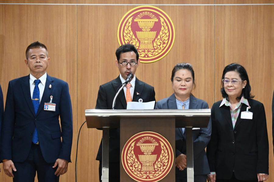 น.ส.พิมพ์พิชชา ชัยศุภกิจเจริญ พร้อมด้วย นายวีรภัทร คันธะ โฆษก กมธ. การศาสนา ศิลปะและวัฒนธรรม และคณะ แถลงข่าวภายหลังการประชุมคณะ กมธ.