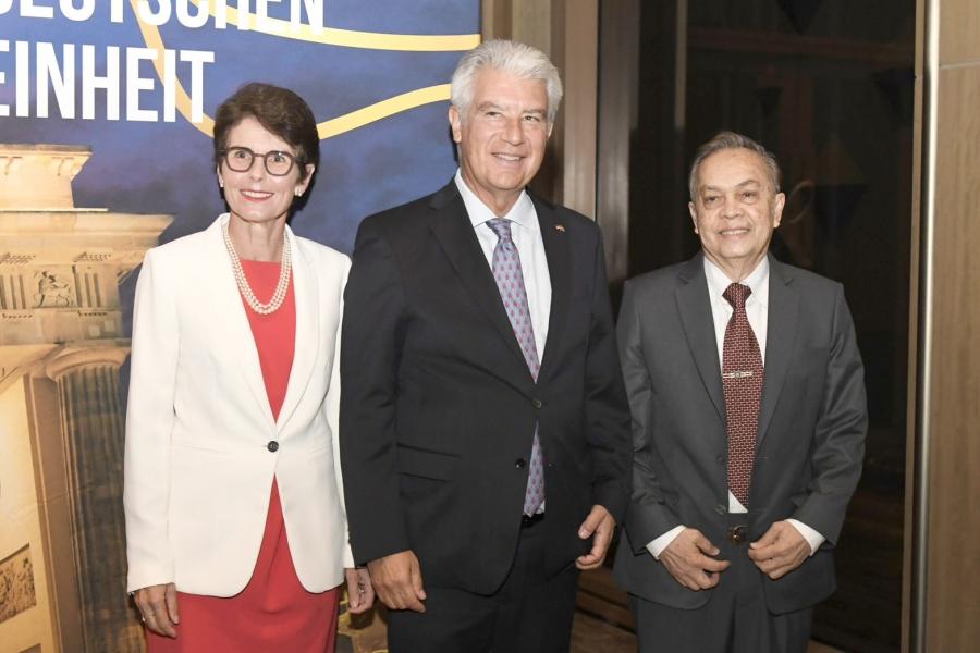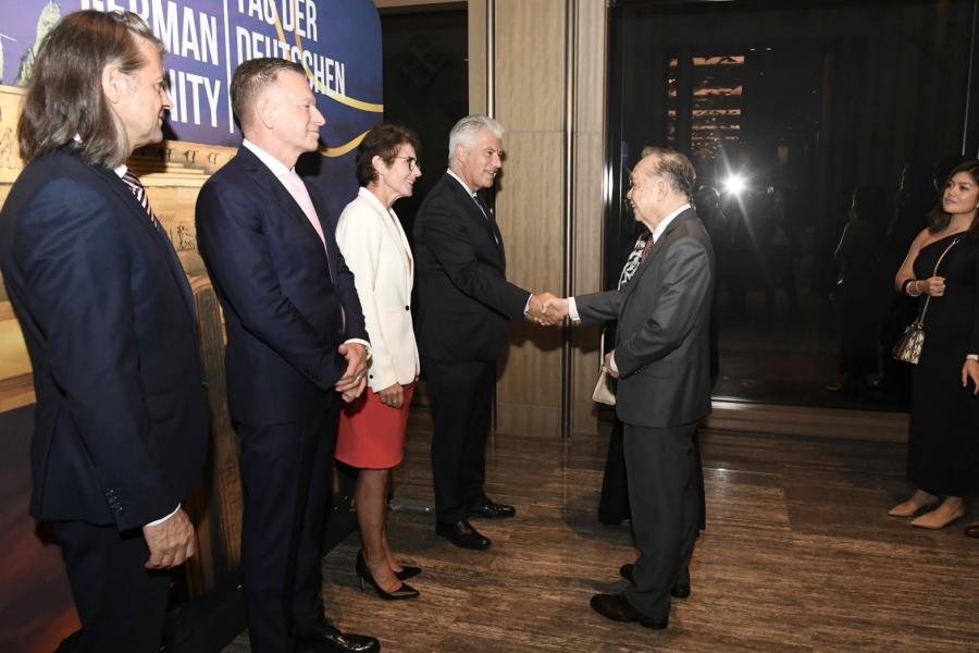 วันพฤหัสบดีที่ 5 ตุลาคม 2566 เวลา 18.30 นาฬิกา ณ ห้องบอลรูม โรงแรมคาเพลลา กรุงเทพฯ นายวันมูหะมัดนอร์ มะทา ประธานสภาผู้แทนราษฎร มอบหมายให้ นายมุข สุไลมาน เลขานุการประธานสภาผู้แทนราษฎร เป็นผู้แทนเข้าร่วมงานเลี้ยงเฉลิมฉลองและแสดงความยินดีเนื่องในโอกาสวันรวมชาติสหพันธ์สาธารณรัฐเยอรมัน ตามคำเชิญของ ดร.แอ็นสท์ ไรเชิล (H.E. Dr. Ernst Reichel) เอกอัครราชทูตสหพันธ์สาธารณรัฐเยอรมนีประจำประเทศไทย