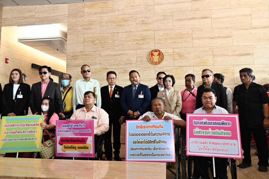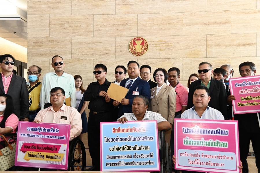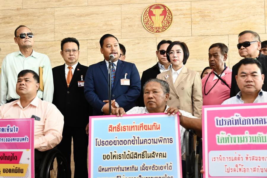 | วันพุธที่ 18 ตุลาคม 2566 เวลา 10.00 นาฬิกา ณ จุดรับยื่นหนังสือ ชั้น 1 (โซนกลาง) อาคารรัฐสภา นายณัฐชา บุญไชยอินสวัสดิ์ ประธานคณะกมธ. การสวัสดิการสังคม และคณะ รับยื่นหนังสือจาก นายสายยน โอษฐงาม ผู้แทนสมาคมแนวร่วมองค์กรพิทักษ์คนพิการและผู้ด้อยโอกาส จำนวน 230 คน จาก 23 หน่วยงาน เพื่อขอโอกาสเข้าถึงอาชีพและสวัสดิการของคนพิการ ด้วยคนพิการไม่ได้รับการสนับสนุนจากองค์กรภาครัฐ หรือ สังคม จึงขอเรียกร้อง ดังนี้ 1) ขอให้รัฐส่งเสริมอาชีพคนพิการให้มีหลักแหล่ง มั่นคงยั่งยืน 2) ขอให้จัดสรรเงินสวัสดิการคนพิการจากรัฐที่เป็นธรรม และอำนวยความสะดวกค้านการเบิกจ่าย ในหน่วยงานเดียวกัน เพื่อความสะดวกแก่ผู้พิการ 3) ขอให้ส่งเสริมสมาคมองค์กรต่างๆ ที่เกี่ยวข้องกับคนพิการทุกด้านทุกมิติที่คนพิการมีส่วนร่วม ให้เป็นรูปธรรม